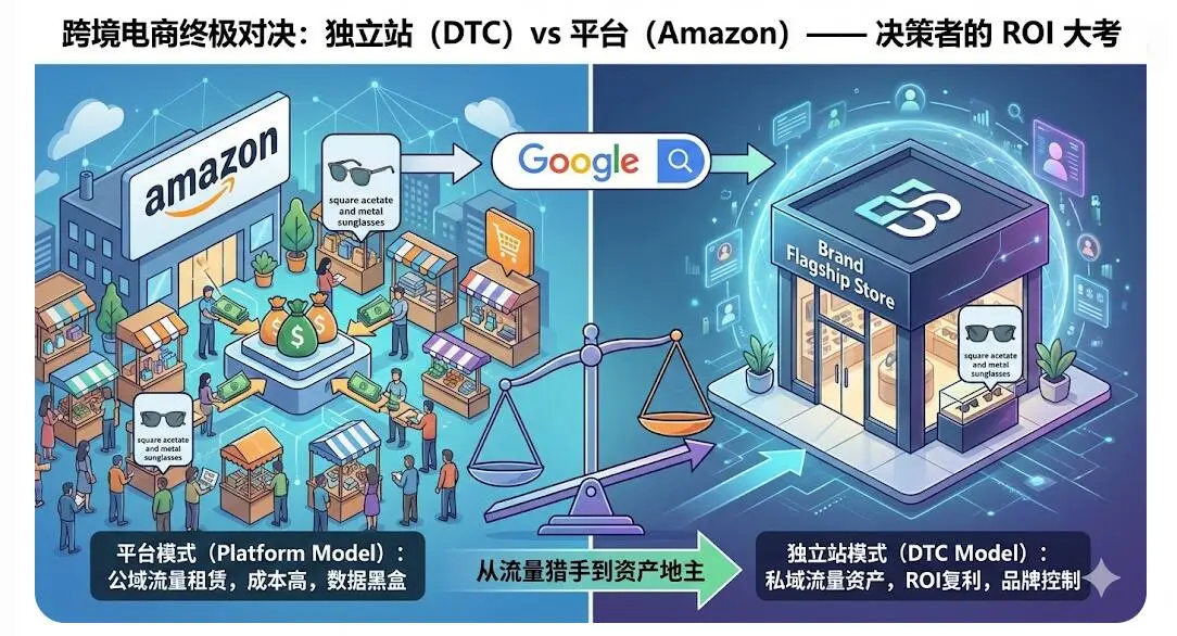 跨境电商终极对决:独立站 (DTC) vs 平台 (Amazon) —— 决策者的 ROI 大考